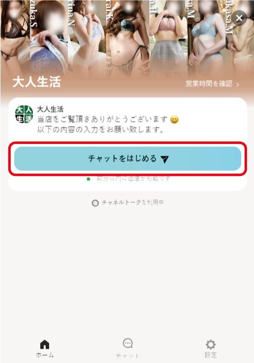続いて、赤丸の『チャットをはじめる』をタップ。