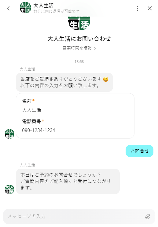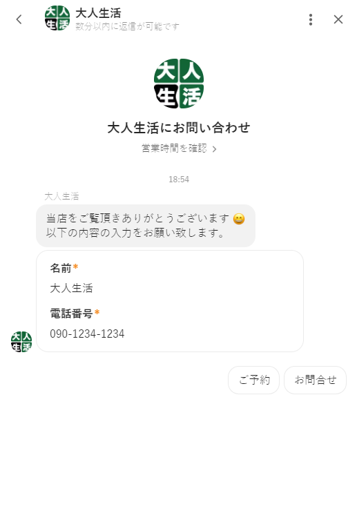 お店の方から返答をさせていただきますので、そのまましばらくお待ちください。
